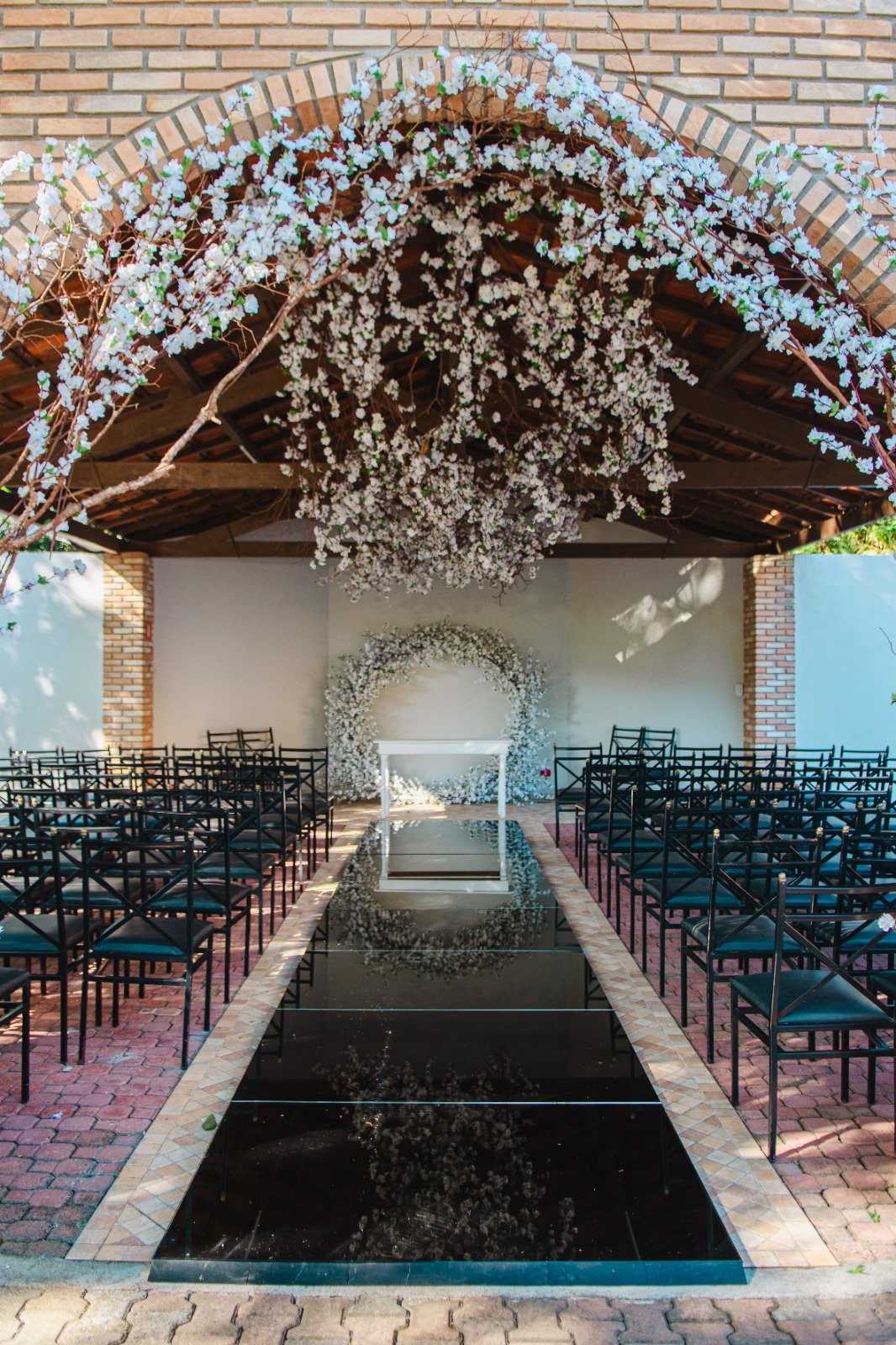 Salão climatizado, área para cerimônia ao ar livre, camarins e muito mais.
